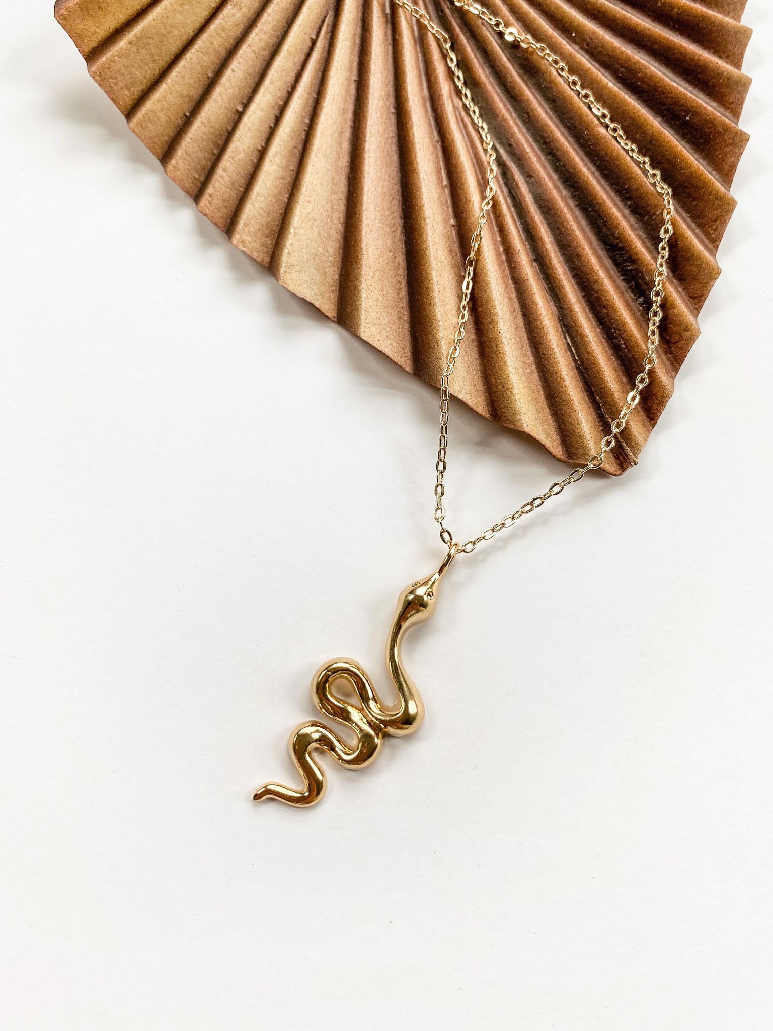 Gold or silver snake pendant on 14K gold-filled or .925 sterling silver chain