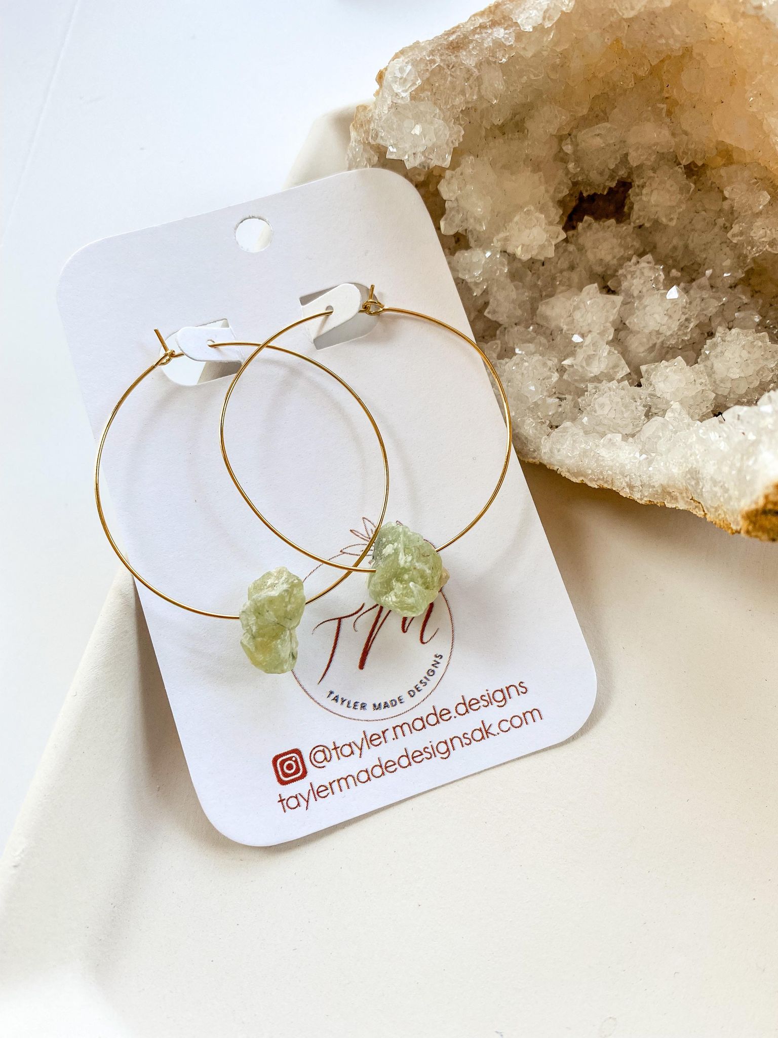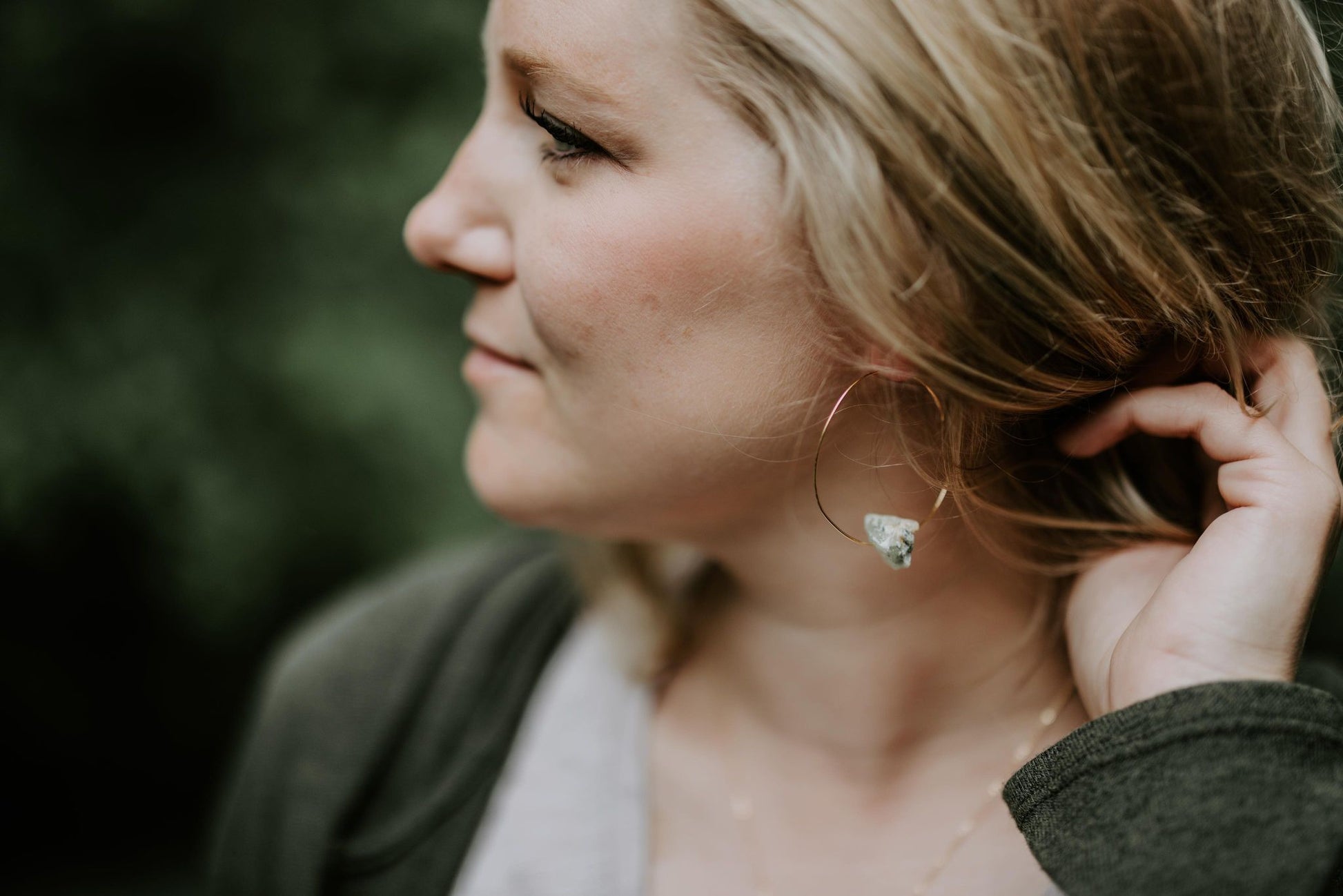 Raw Prehnite Hoops
